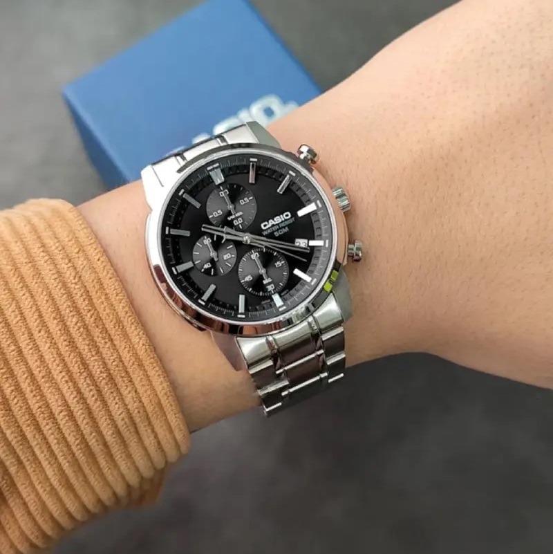 The CASIO MTP-E510D-1A1VDF embodies elegance without excess, precision, and reliability in every detail — a watch that speaks quietly but confidently about its wearer