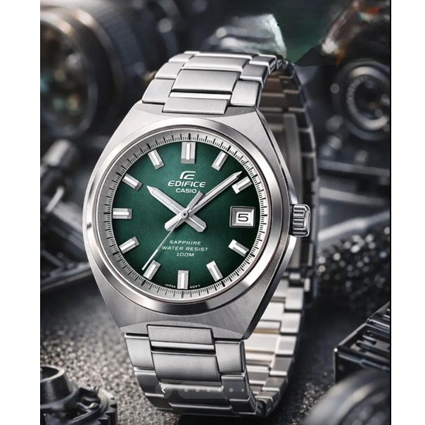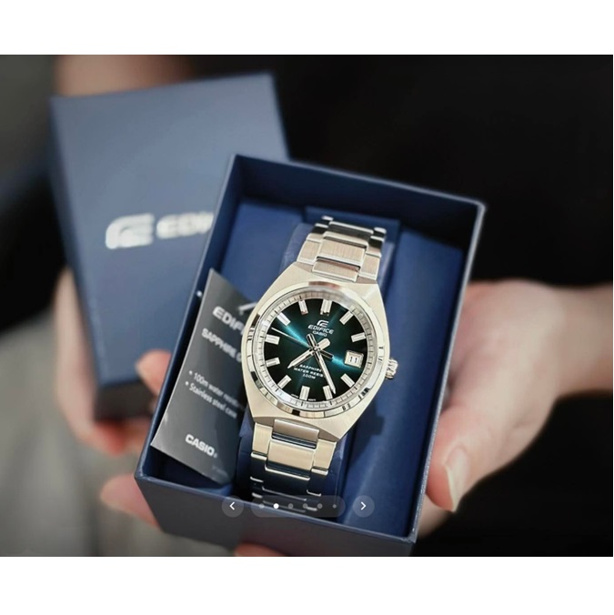 CASIO EDIFICE EFB-109D-3AVEF — це чоловічий годинник із серії Edifice, у якому ділова стриманість поєднується з живим, сучасним акцентом. Круглий корпус діаметром 39 мм із нержавіючої сталі з радіальним хейрлайн-фінішингом та дзеркально полірованим тонким безелем утворюють бездоганний дует — вагомий, але не масивний, класичний, але не нудний.