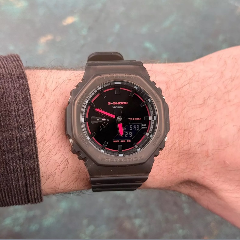 CASIO G-SHOCK GA-2100K-5AER — це чоловічий годинник із серії G-Shock, у якому культова «CasiOak» перетворилась на об’єкт із власною атмосферою. Та сама колекція K — нічне місто, лазерне світло крізь туман, пульс електронної музики, що відчувається до того, як чуєш.
