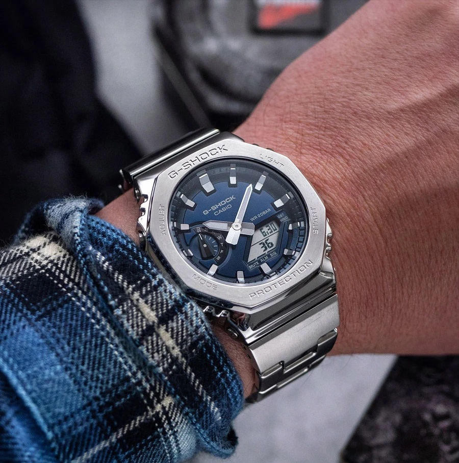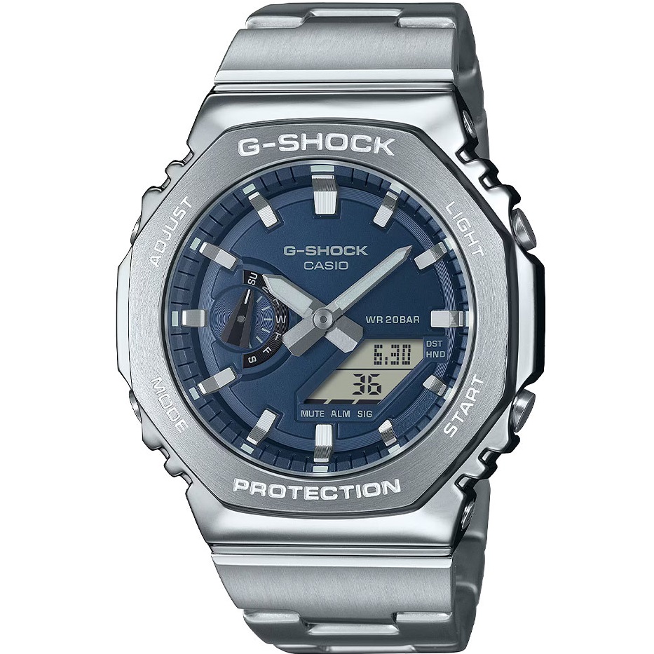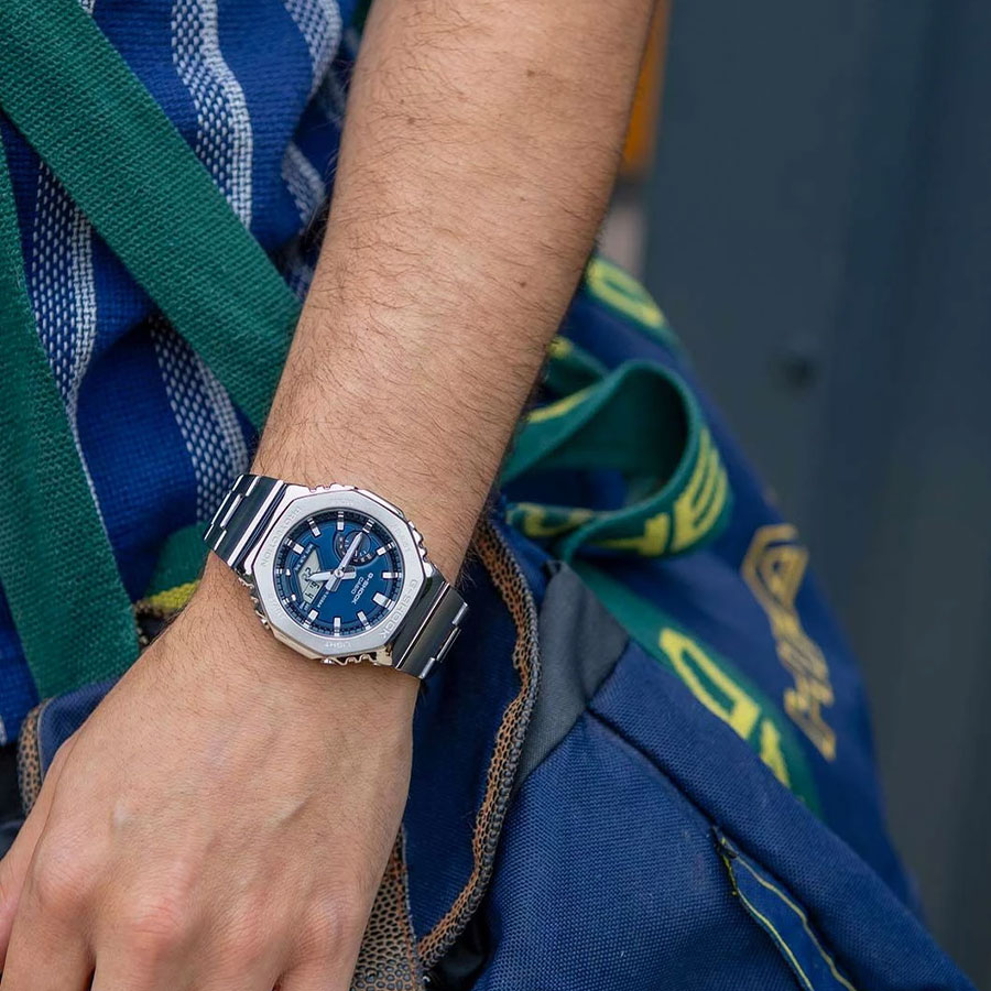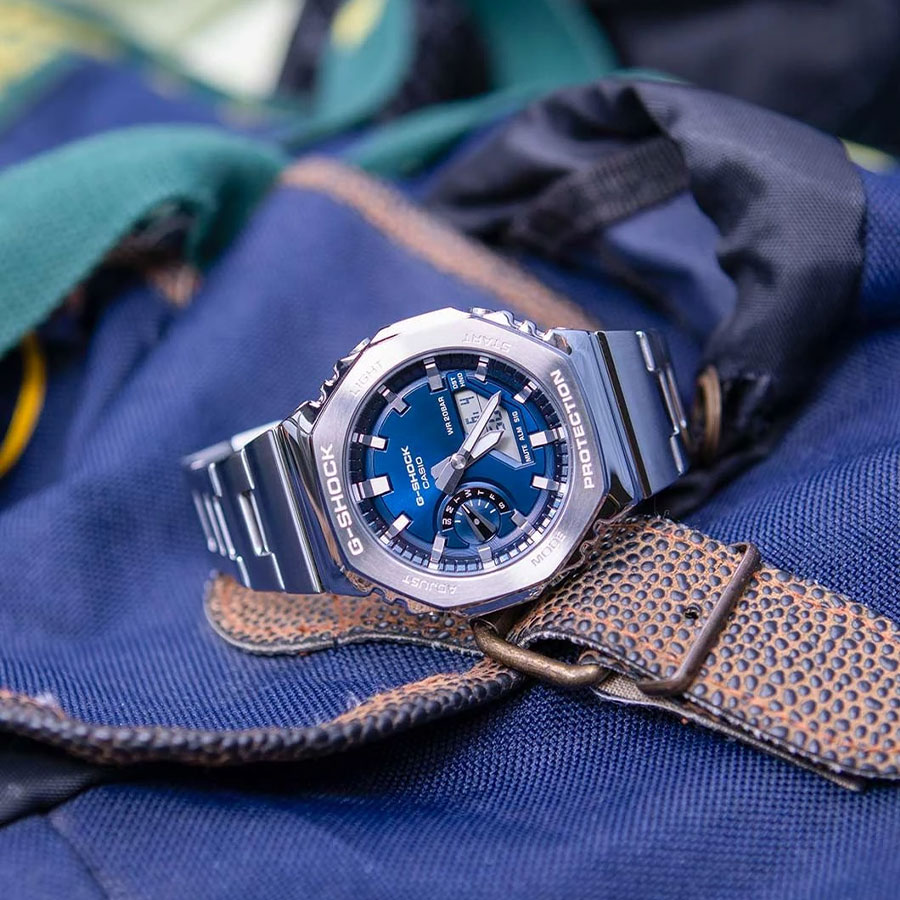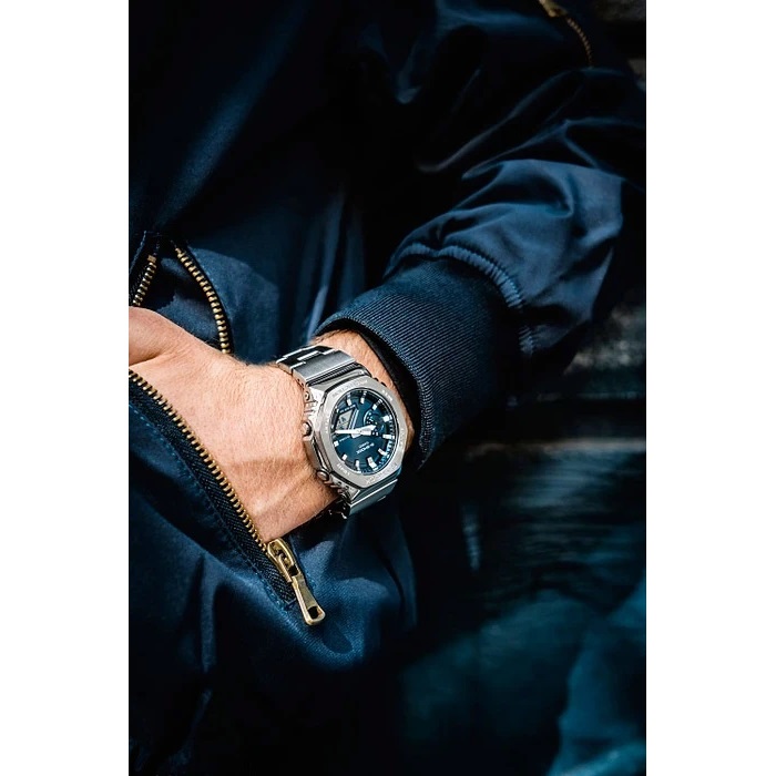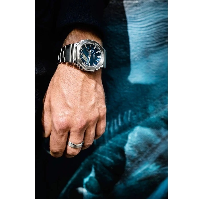 CASIO G-SHOCK GM-2110D-2BER — це той випадок, коли “CasiOak” стає серйознішим. Без зайвого шуму, без кричущих деталей — тільки метал, глибокий синій колір і відчуття впевненості на руці.