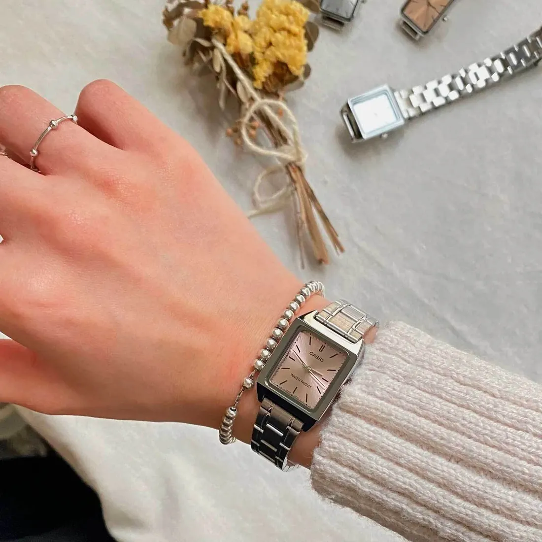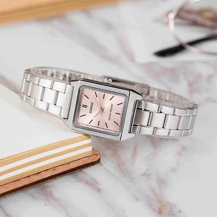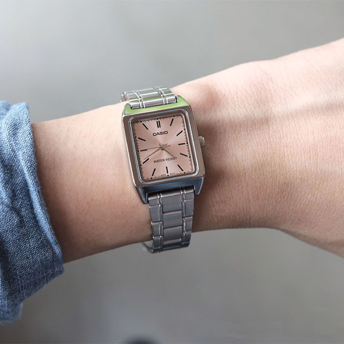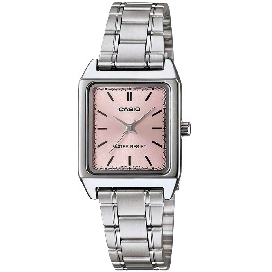 CASIO LTP-V007D-4EUDF — це витончена жіноча класика з м’яким вінтажним настроєм, створена для тих, хто цінує елегантність без зайвого шуму. Ніжно-рожевий аналоговий циферблат виглядає тепло й делікатно, додаючи образу жіночності та легкого ретро-шарму. Тонкі сріблясті стрілки та мінімалістичні мітки забезпечують легке зчитування часу й підкреслюють стриману естетику моделі.