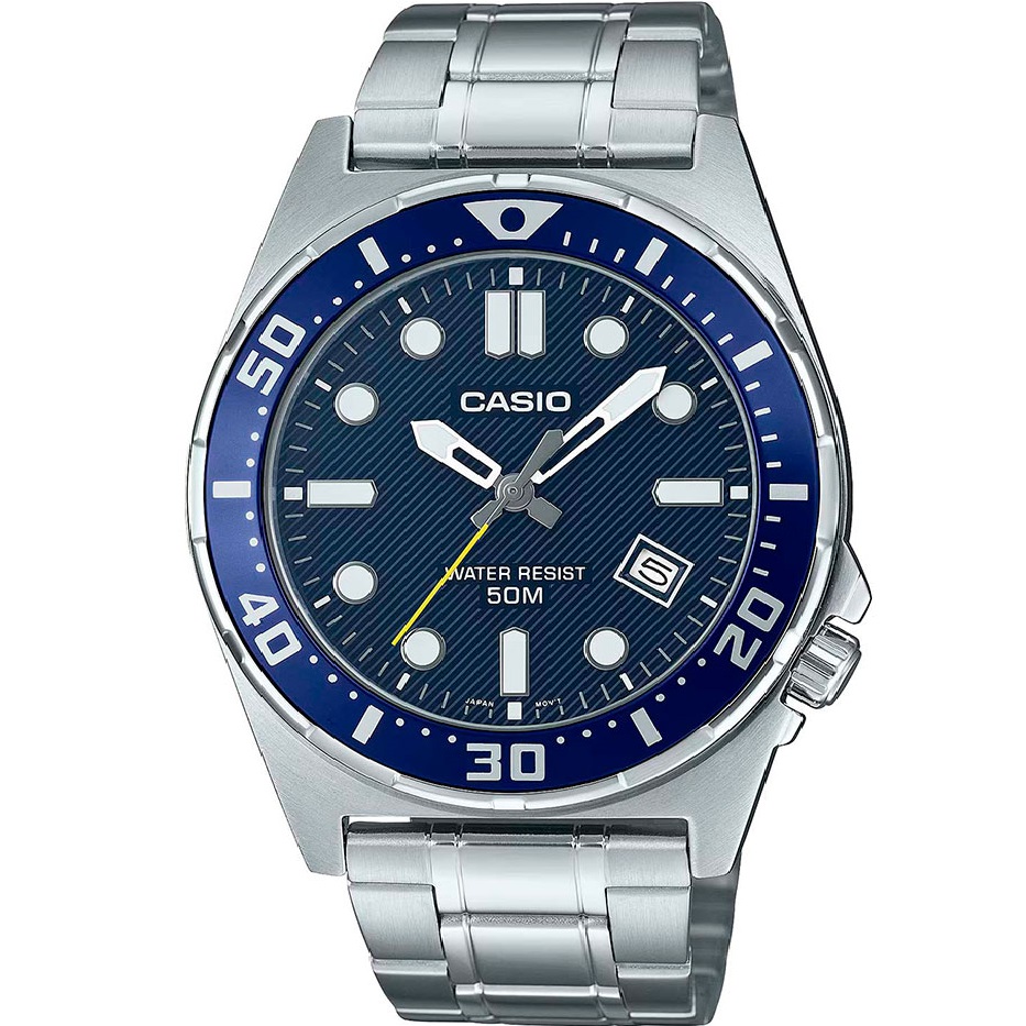 CASIO MTD-135D-2AVDF — це стримана класика з елегантним холодним характером, створена для тих, хто цінує практичність і стиль без зайвих деталей. Його корпус із нержавіючої сталі розмірами приблизно 50 × 43,6 × 9,3 мм і масивний сталевий браслет створюють міцний, солідний силует, який надійно лежить на зап’ясті.