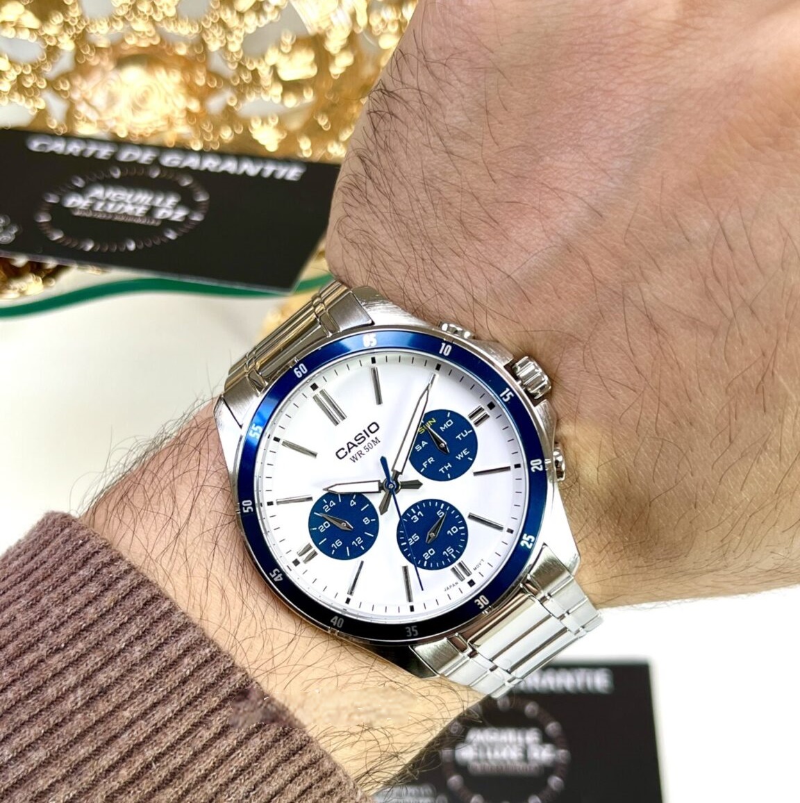 Циферблат гармонійно доповнений функціональними індикаторами: індикатор дати, індикатор дня тижня та 24-годинний формат часу, що робить годинник не лише стильним аксесуаром, а й зручним інструментом для щоденного контролю часу.