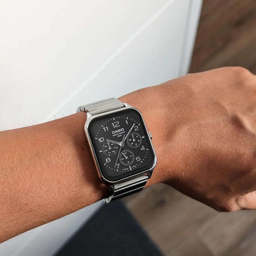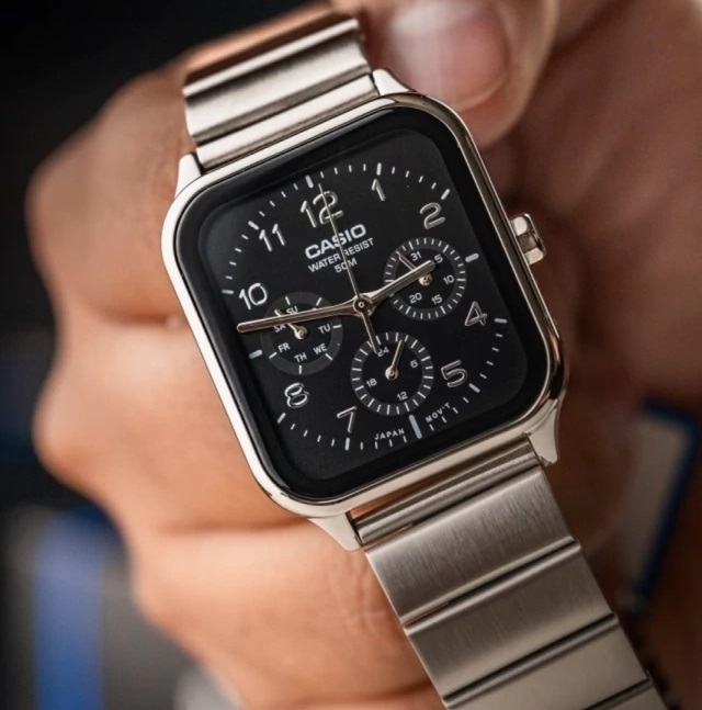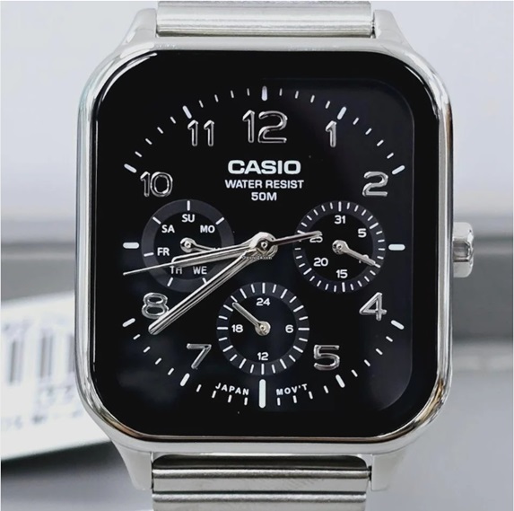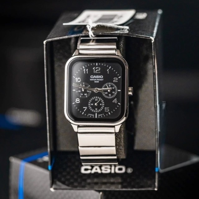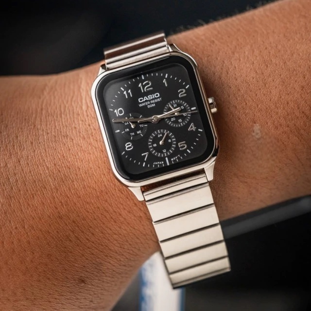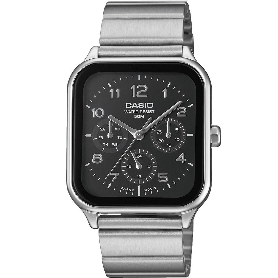 CASIO MTP-M306D-1AVDF — це стримана багатофункціональна елегантність із чітким класичним характером. Чорний циферблат виглядає глибоким і зібраним, створюючи відчуття впевненості та впорядкованості. Дизайн залишається чистим і врівноваженим, водночас практичним завдяки індикаторам дати, дня тижня та місяця, які акуратно інтегровані в композицію й не перевантажують зовнішній вигляд.