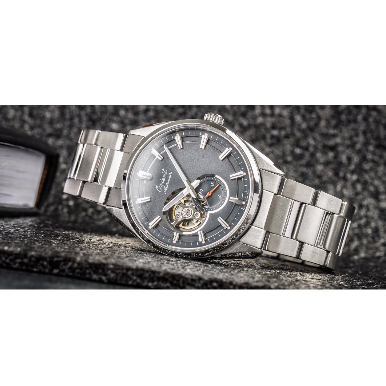 ORIENT RA-AR012N30B — це класика, яка не стоїть на місці. З першого погляду — стриманий годинник у графітовому тоні, але варто придивитися — і він буквально “оживає” на зап’ясті.